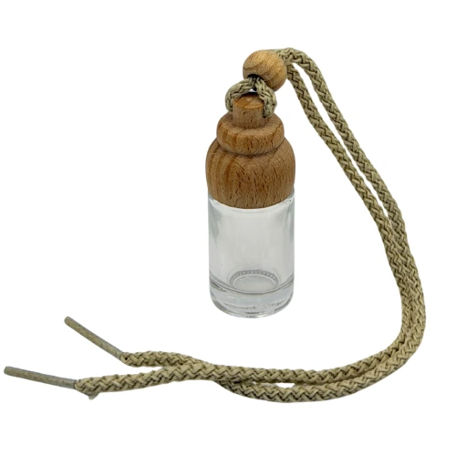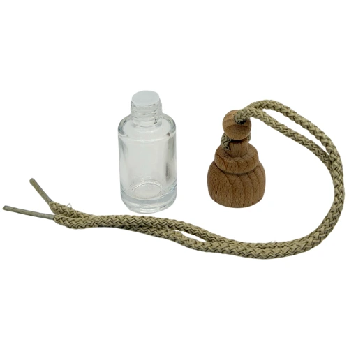 Su formato compacto y redondo lo convierte en una opción práctica para usar como ambientador colgante en vehículos. El vidrio transparente permite ver fácilmente el contenido interior. Además, su tapa de madera permite una difusión progresiva del aroma mediante absorción natural.